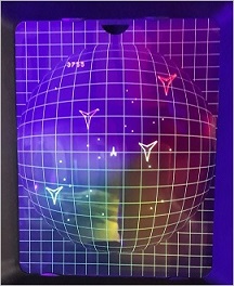 where depending on the UV light intensity the Vector graphics appear to float either behind or on top of the overlay. There are videos