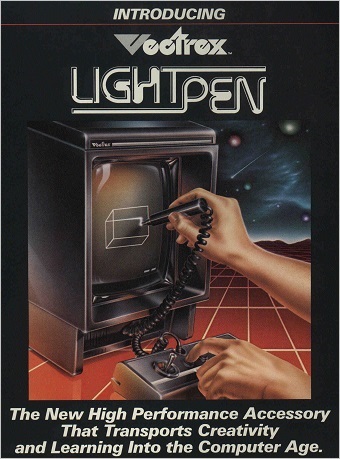In 1983, Milton Bradley also released a light pen for use with the Vectrex that worked with three light pen “game” carts. Two of the releases were
